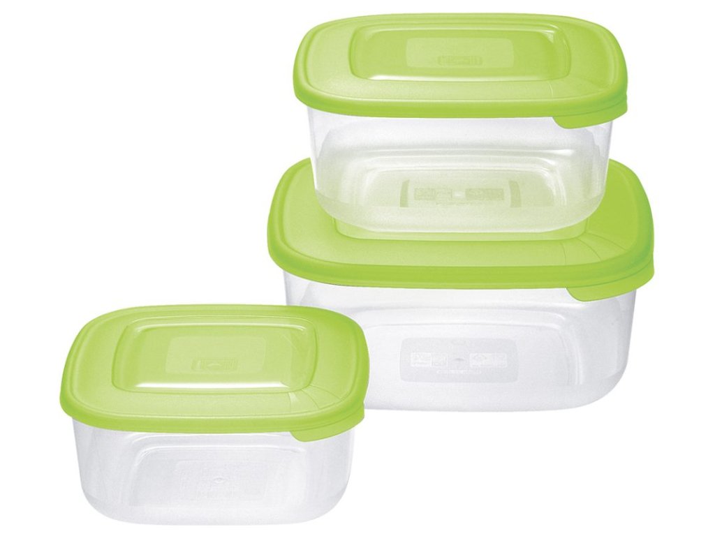 Sada 3 plastových dóz bude praktickým i nezbytným pomocníkem v každé domácnosti. Dózy jsou vhodné nejen pro uchování a přenášení jídla, ale také pro ohřev v mikrovlnné troubě (bez víka, max. 400 W, 3 minuty).