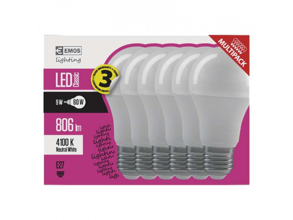 LED Žárovka 8.5W/60W E27 6ks neutrální bílá - ZQ5141.6