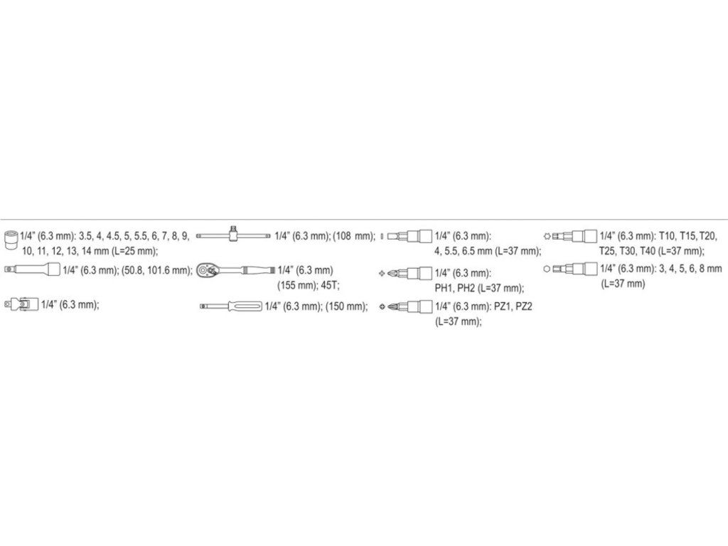 14x nástavec 1/4": 3,5; 4; 4,5; 5; 5,5; 6; 7; 8; 9; 10; 11; 12; 13; 14 mm (25 mm)