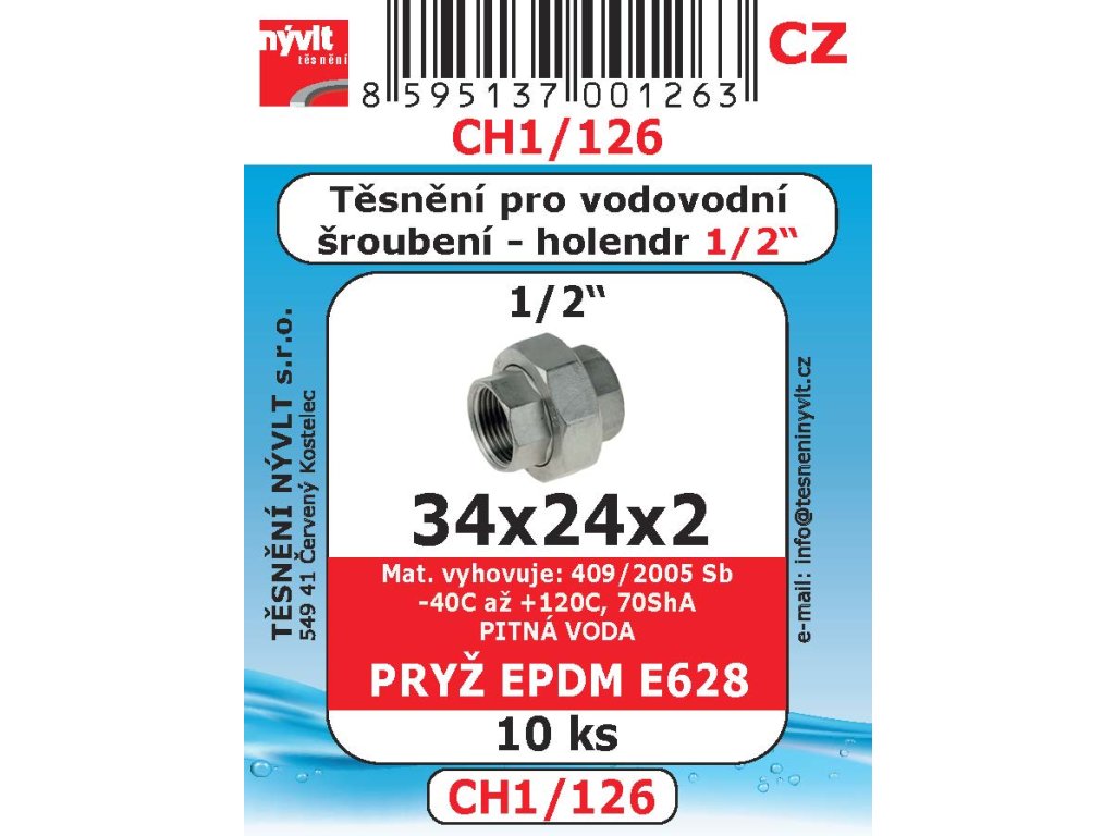 Sada těsnění 1/2 vodo šr holand pryž E628 - - CH1/126