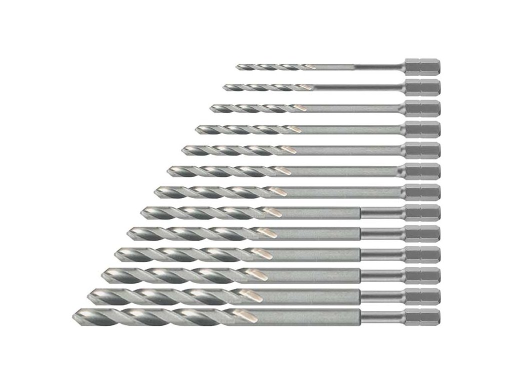V sadě jsou tyto průměry: 1,5; 2; 2,5; 3; 3,2; 3,5; 4; 4,5; 4,8; 5; 5,5; 6; 6,5mm. Vrtáky jsou vyrobeny z kvalitní oceli.Doplňkové parametry