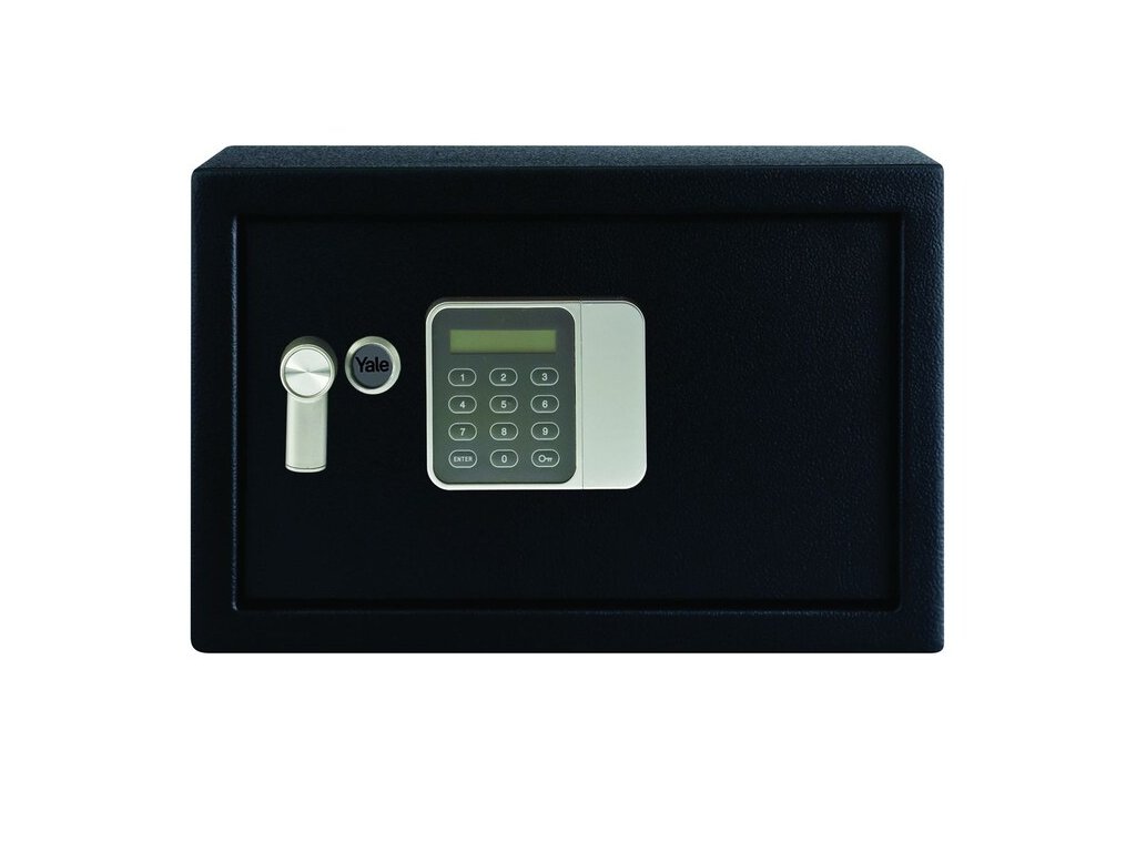 Charakteristika: Velmi kvalitní domácí/hotelový jednoplášťový trezor YALE s elektronickým zámkem.Časový zámek