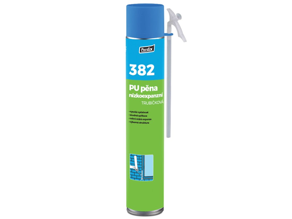 VLASTNOSTI A OBLASTI POUŽITÍ Perdix 382 PU pěna nízkoxpanzní trubičková je montážní a izolační polyuretanová hmota. Je určenapro aplikace s požadavkem na nízkou expanzi hotové pěny, s vynikající adhezí ke všem stavebním