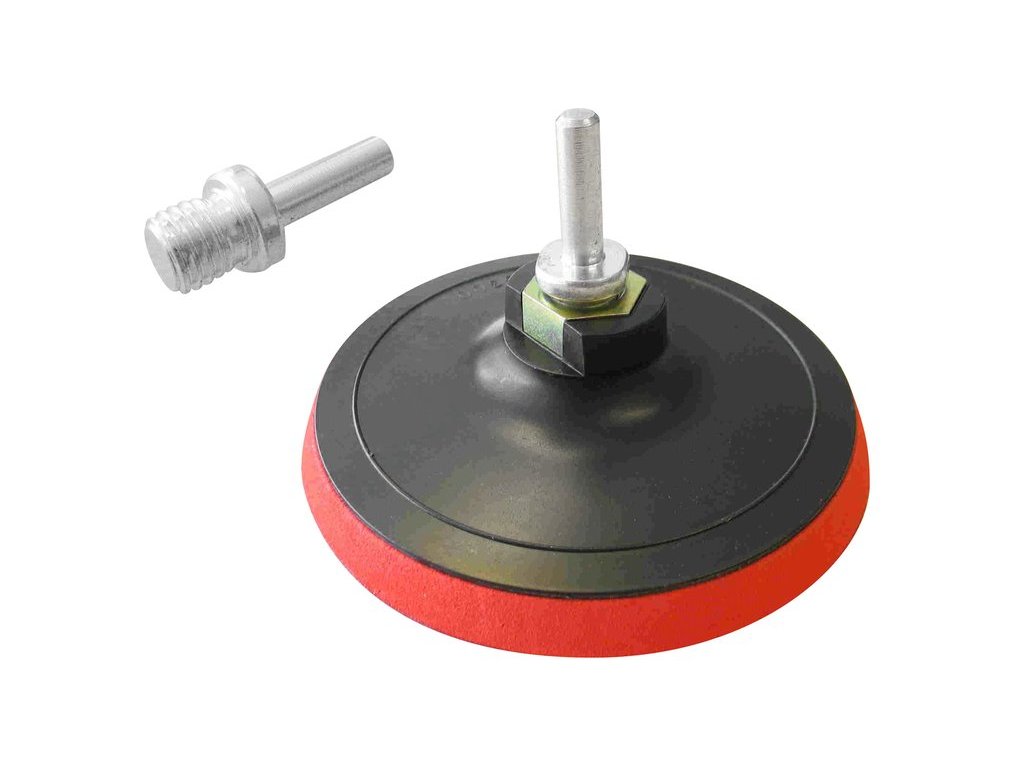 vrstva měkké a ohebné pěny nosná deska z kvalitního plastu odolná proti prasknutí redukce ze závitu M14 na úchyt do vrtačky ? 8mm rozšiřuje možnost použití nosiče i do vrtaček pracovní plocha se suchým zipem pro uchycení brusných výseků a leštícího kotouče závit M14 na úhlovou bruskuDoplňkové parametry